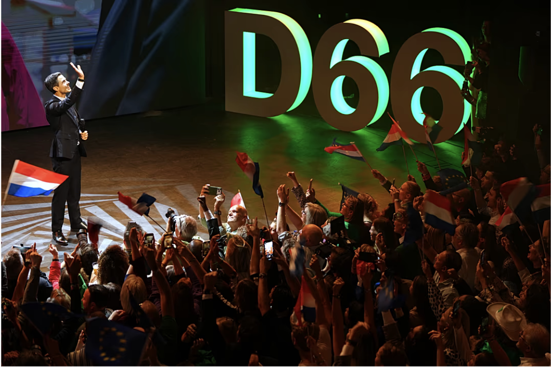 The D66 party, which had a mere 9 seats less than two years ago, surged in the polls only in recent weeks following Jetten’s dazzling media campaign, which even included a hit appearance on a game show finale. He must now take on the difficult task of forming a coalition with at least three other parties to secure the 76 seats required to rule the country.
